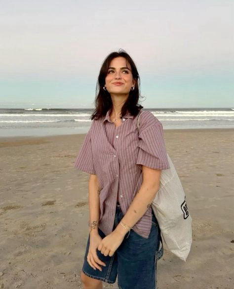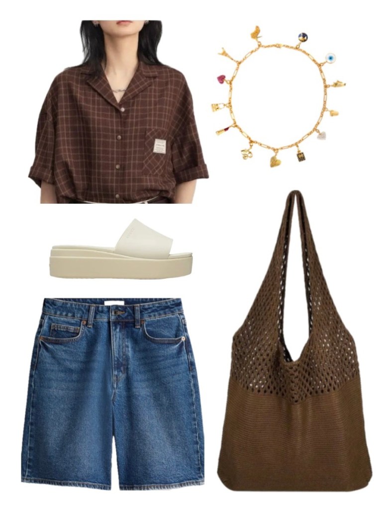 Get this fit: A striped half sleeve shirt (better if it’s a hand-me-down) with a denim Bermuda shorts with a crochet tote bag to fit in all your beach essentials. Charm necklaces and flip flops add to the vibe.